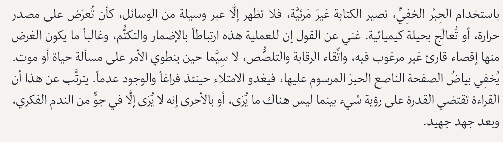 يترتَّب عن هذا أن القراءة تقتضي القدرة على رؤية شيء بينما ليس هناك ما يُرَى